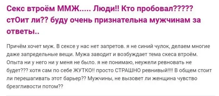 Когда муж предложил тройничок: обсуждения с женских форумов