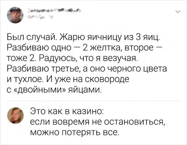 Мы все владеем примерно одинаковым словарным запасом, только вот у некоторых получается складывать слова в такие остроумные реплики, что не рассмеяться невозможно. Интернет такого не забывает, так что вот вам новая подборка от главных шутников сети, которые запросто связывают в одном предложении яичницу с казино, а Парфенон с теплицей.