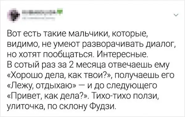 Человек не робот, поэтому время от времени нам надо выпускать пар. Для этого существует масса разных способов, но герои этой подборки выбрали свой метод - писать забавные твиты. В итоге получается двойная польза: человек расслабился и народ повеселил. Давайте посмотрим, что нам рассказали остряки с просторов Твиттера.