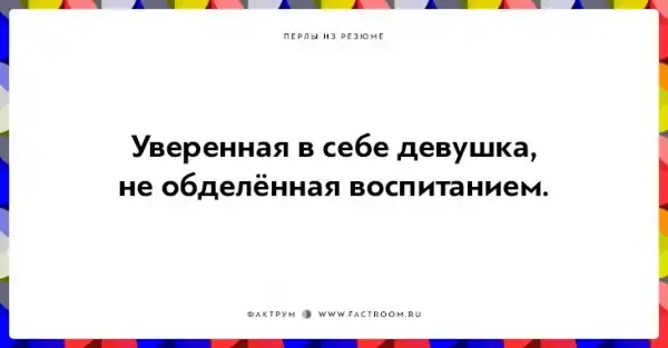Порой на стол специалистов по подбору персонала ложатся такие шедевры, что просто невозможно не расхохотаться! Видно, что авторы старались показать себя во всей красе и мыслить нестандартно. Публикуем два десятка таких оригинальных перлов.