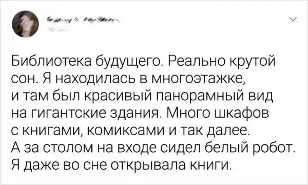 Наш мозг - это самый лучший мире сценарист и режиссёр. Сознание может творить совершенно безумные сюжеты, исход которых невозможно предугадать. Пользователи Твиттера решили объединиться в общем треде и поведать о своих странных сновидениях. Кстати, а что интересного снилось вам в последнее время?
