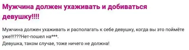 Размышления пользователей о том, что "должен" делать мужчина в отношениях с девушкой