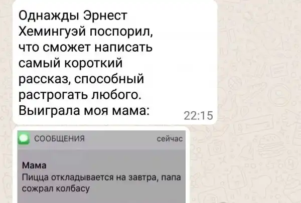 К примеру, они могут показать, как на деле работает мужская солидарность или почему примеры работ в резюме при устройстве на работу должны быть качественными. Почему на корпоративах начальству лучше не спорить с сотрудниками и как выглядит самый короткий рассказ в мире, способный растрогать любого? Заинтересовали? Все ответы ниже!