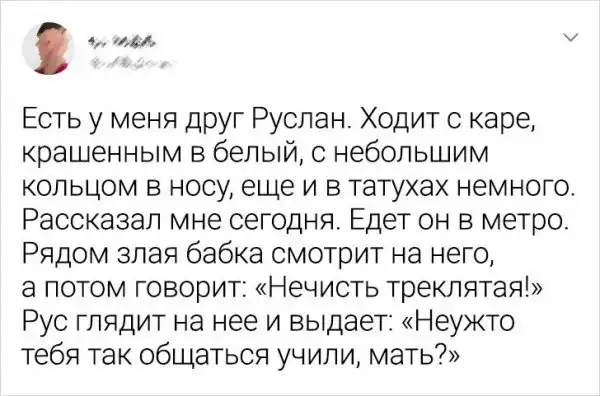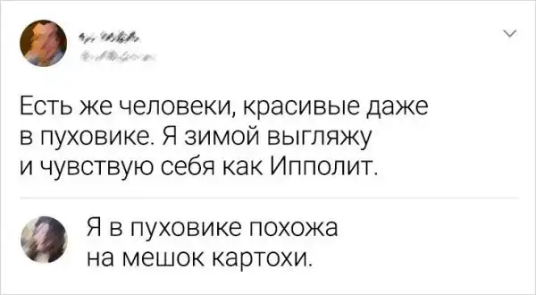Твиты - это как стендап в миниатюре. Точно так же как и стендап-комик, автор твита рассказывает житейскую историю, приправленную сарказмом и иронией, но только в очень сжатой форме. Также твиты имеют не только комедийный, но и психотерапевтический эффект. Ведь всем порой хочется немного пожаловаться на бытие. Можно написать житейский твит и на душе сразу станет легче.