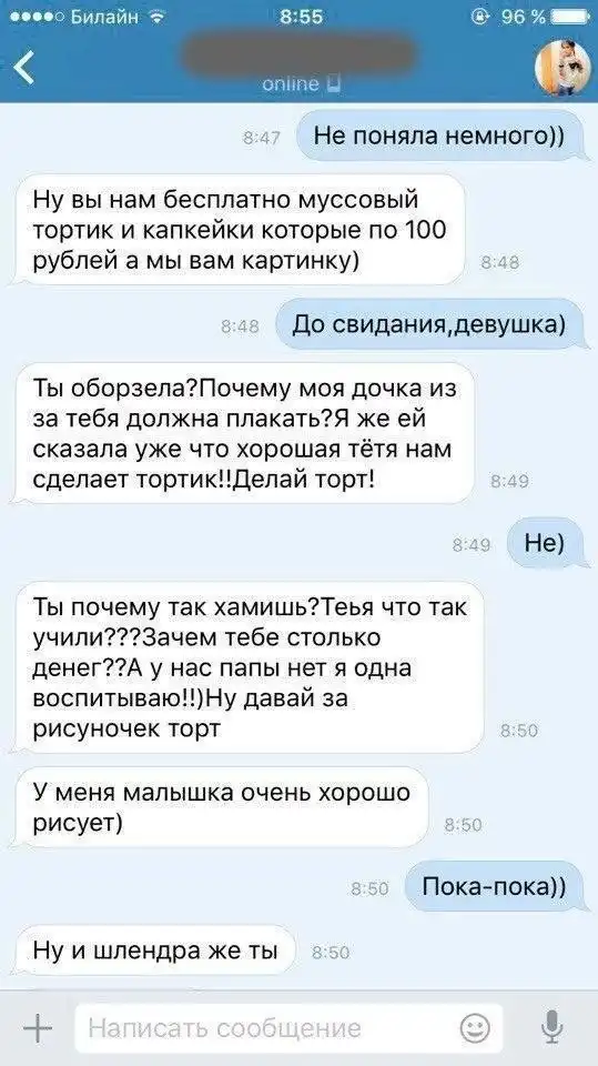 Почему то бОльшая часть этих прохладных историй про "ох*евших яжматерей" кажется отборным п*здежом. Сфабриковать такую фейковую переписку - как два пальца об асфальт. Ими весь интернет кишит, так нахера это сюда постить?
