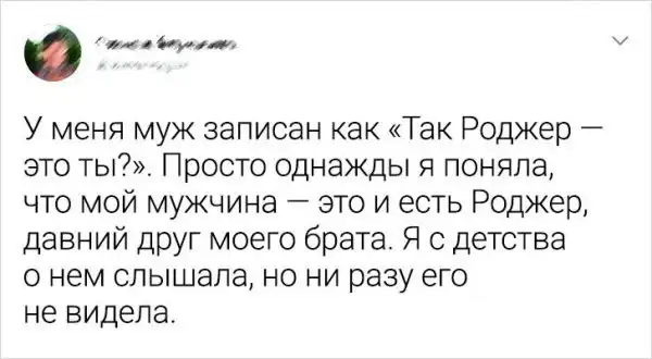 Пожалуй, у каждого человека была такая ситуация, когда просматриваешь свои контакты в телефоне и не можешь вспомнить половину из них. И даже странные уточняющие "подсказки" вместо фамилии не улучшают положение. Кто все эти люди: "Света Кирпич", "Виктория 22 сантиметра", "Владик - Мэри Поппинс"... кто это - загадка. Пользователи Твиттера решили объединится в общем треде и поделиться своими забавными и странными контактами.