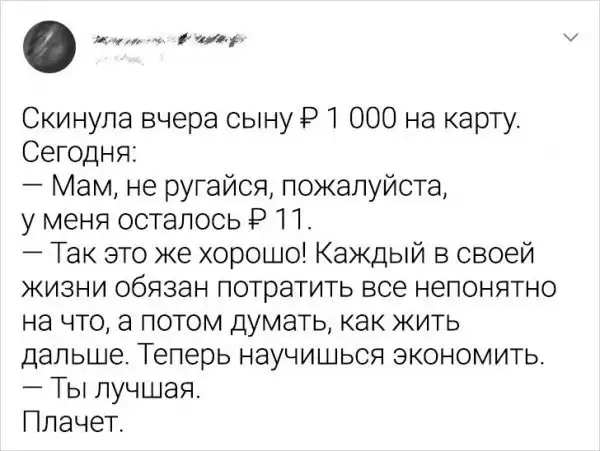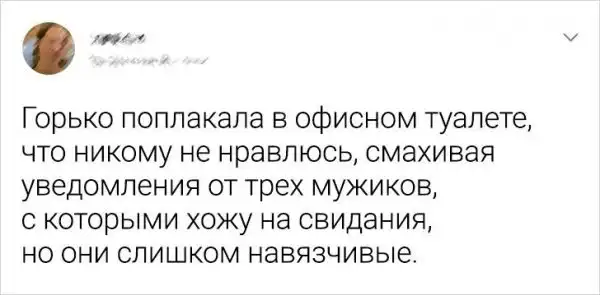 Жизнь - это вам не прогулка по парку. Судьба каждого из нас проверяет на прочность и подбрасывает новые испытания. Чтобы совсем не очерстветь, ко всем жизненным неурядицам нужно относиться со здравой долей юмора. В Твиттере народ делиться не только шутками, но и забавными историями и жизненными наблюдениями, в которых многие люди могут узнать себя.