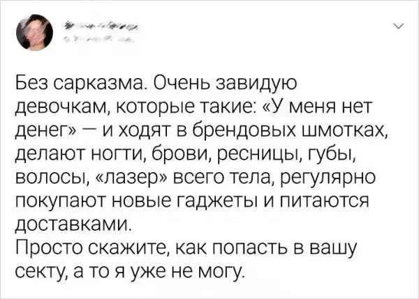 Девушки не хуже парней умеют посмеяться над собой и поиронизировать над собственными проблемами. В Твиттере они нередко делятся забавными и очень жизненными шутками, которые поймет любая женщина. Итак, давайте сделаем перерыв и поднимем себе настроение в новой подборке твитов.