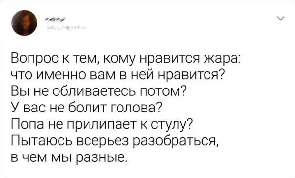 Да, это лето вышло действительно знойным. Многие города обновили рекорды своих самых жарких дней. Многим россиянам, которые не привыкли к таким тропическим температурам, летнее пекло далось очень нелегко. Но наши пользователи Твиттера умудряются шутить даже в такую погоду.