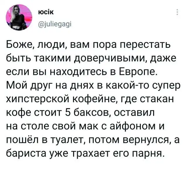 А вот и новая подборка забавных твитов на самые разные темы. В меню все как обычно: актуальный юмор, жизненные наблюдения и просто необычные мысли, которыми их авторы не могут не поделиться. Итак, давайте же поглядим, что интересного они приготовили нам сегодня.