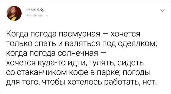 Жизнь - штука непростая. То и дело нам головы обрушиваются новые трудности. Но чтобы не приуныть окончательно, надо уметь смеяться над собой и улыбаться в лицо всем невзгодам назло. Собственно, именно так и делают авторы этих твитов.