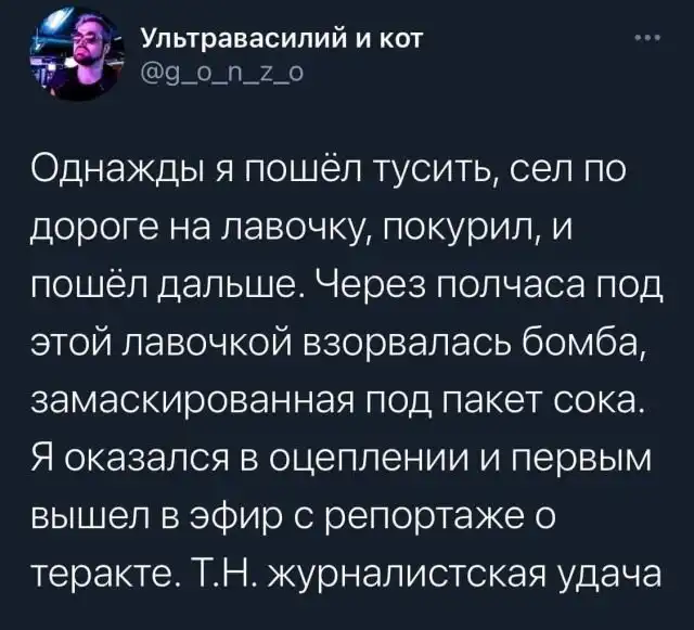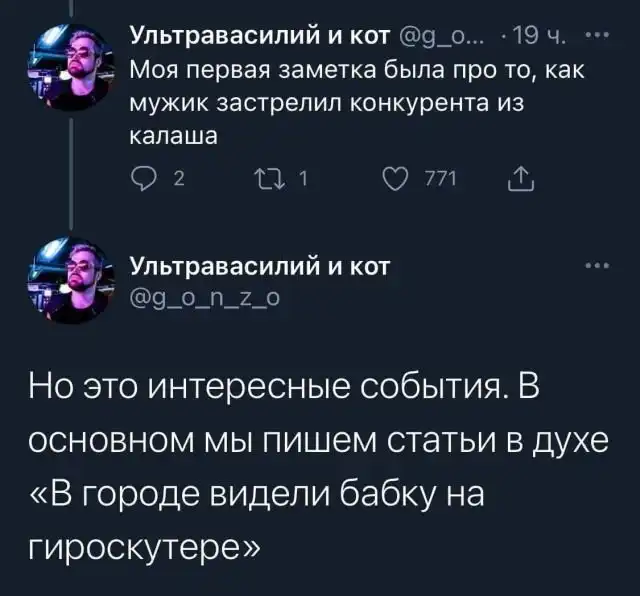 Многие думают о том, что какие вообще могут новости в регионах? Мол, дедушка с лестницы упал, а бабушки выросла тыква странной формы. Это все стереотипы и в маленьких городах происходят события, которые ничем не уступают сенсациям из мегаполисов. Пользователь Твиттера решил поделиться своими воспоминаниями о работе и поведал об обычных буднях журналиста из регионов.