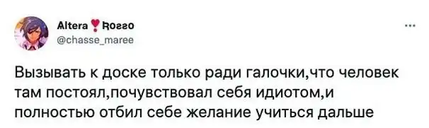 Как известно, далеко не все учителя в учебных заведениях могут похвастаться навыками в обращении со школьниками и студентами. Поэтому в Twitter и появился тред, в котором пользователи решили рассказать грустные истории о том, почему же у них пропало желание учиться. Надеюсь, таких примеров все-таки меньше, чем нормальных.