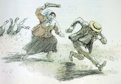 Одним центральных персонажей романа «Золотой теленок» является мелкий жулик Михаил Самуэлевич Паниковский. Это чуть ли не единственный персонаж книги, выведенный без какого–либо сочувствия со стороны авторов. Он вздорный, шумный, ворует гусей, притворяется слепым и норовит обмануть своих «коллег» по отъему миллиона у Корейко. Даже смерть Паниковского подана комично, без малейшего оттенка трагизма.