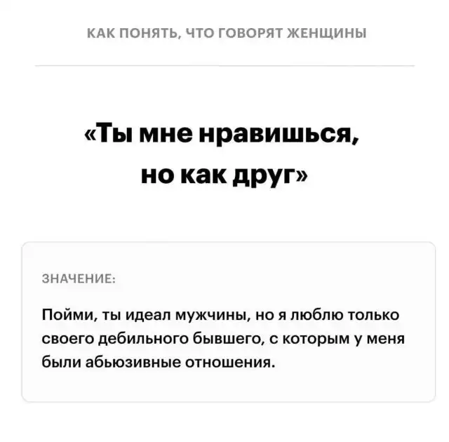 Я пока еще молодой муж и не до конца понимаю то, что требует от меня жена. А требует она уже очень много: сапожки, шубку, помочь по дому, проводить больше времени, да еще и работать лучше. В общем, семейная жизнь - это сказка. Иногда я ее не понимаю, но хорошо, что есть "словарь" - тут все написано четко и ясно.