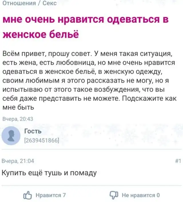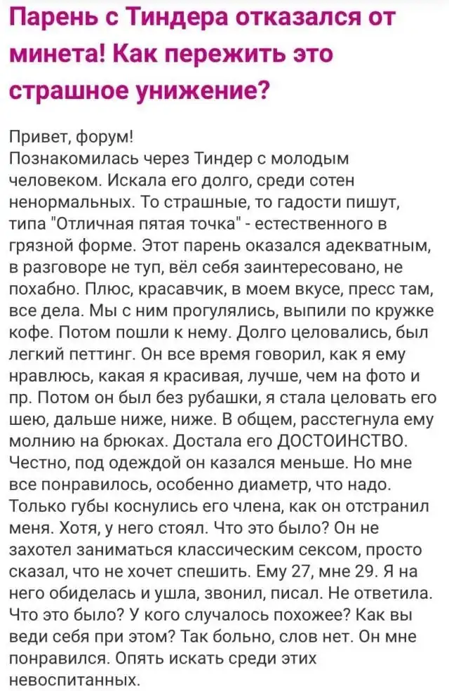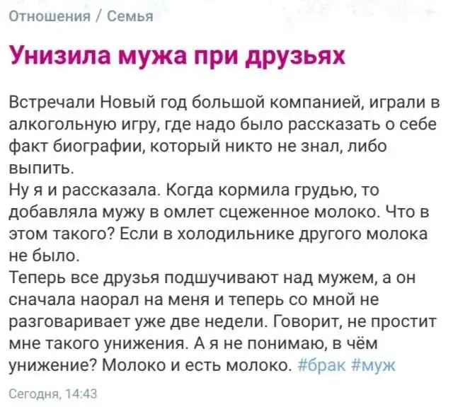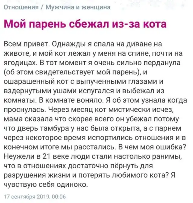 А вот и новые безумные истории с женских форумов, где барышни разного возраста просят совета у коллег по несчастью. Порой на женскую территорию заглядывают и мужчины, которые задают не менее безумные вопросы. Давайте посмотрим, что случилось у этих бедняг сегодня.