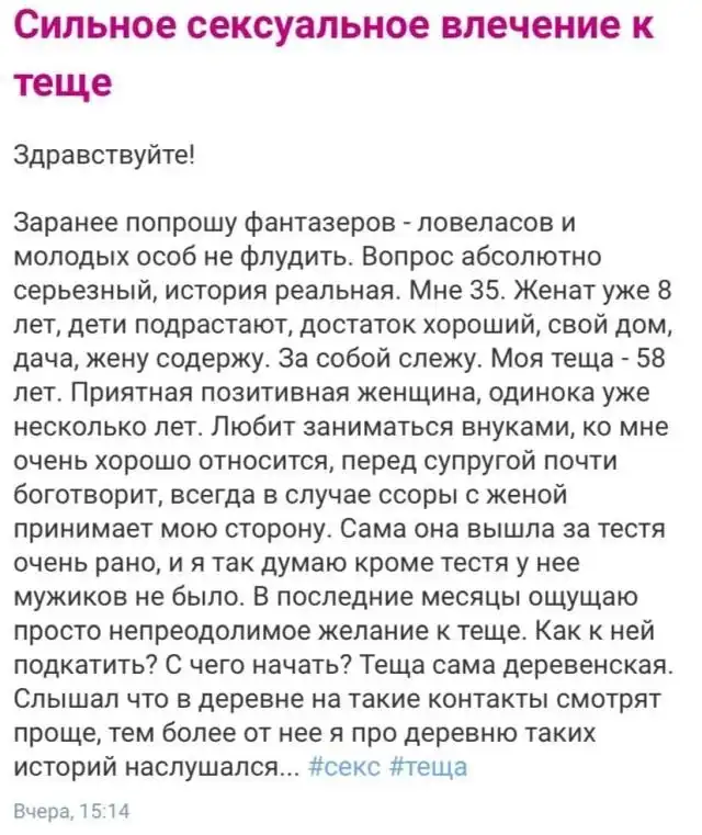 А вот и новые безумные истории с женских форумов. Как и всегда барышни делятся с коллегами по несчастью своими проблемами и ищут у них житейской мудрости. Порой к дискуссии присоединяются и мужчины, которые нуждаются в женском совете. И как обычно, поднятые темы заставляют краснеть.