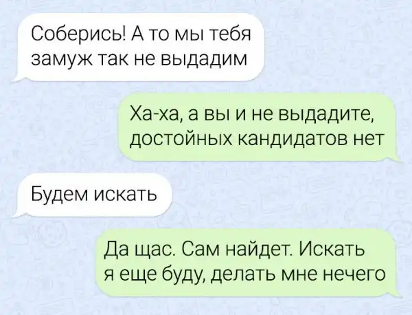 Мессенджеры уже давно стали частью нашей жизни. Мы там не только переписываемся с друзьями, но ведем деловые переписки. И, конечно, многие люди смогли научить своих родственников пользоваться этим благом цивилизации. Ведь благодаря мессенджерам тало намного легче держать связь с близкими. Так и родились на свет "семейные чаты", которые нынче стали источником юмора и хорошего настроения.