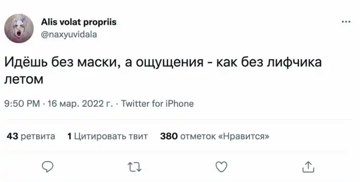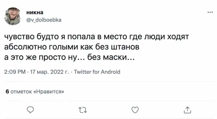 2. Многие так сильно отвыкли выходить из дома без маски, что сейчас испытывают очень странные ощущения