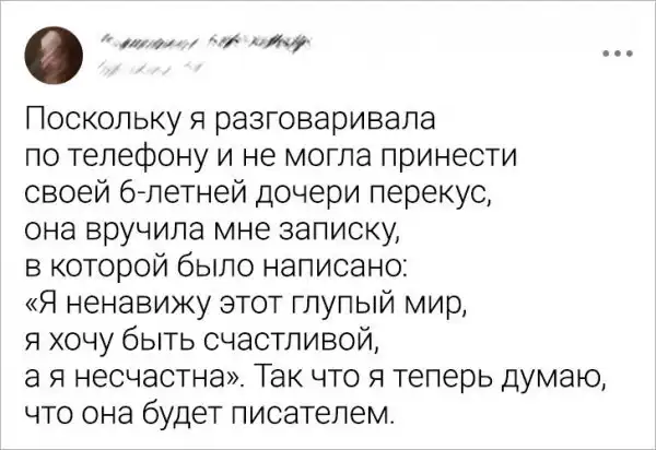Каждый родитель, проводя время со своим ребенком, всегда должен держать блокнот и ручку наготове. Ведь порой детишки выдают такие фразы, что их срочно надо записать. В итоге можно легко написать целую книгу из афоризмов. Давайте поглядим, какие перлы выдали детки авторов этих твитов.