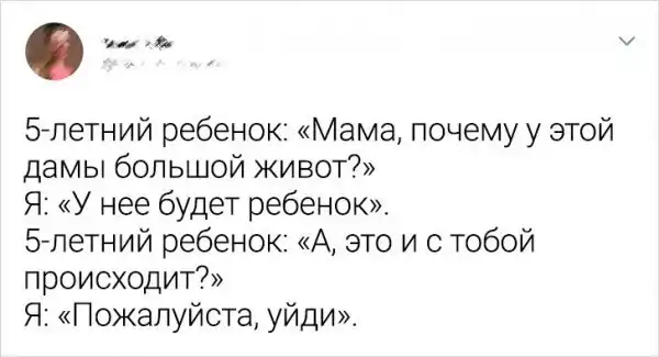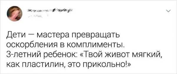 Дети имеют особый образ мышления, который кардинально отличается от взрослого. Малыши, как правило, предпочитают сразу говорить горькую правду прямо в лоб. Такая детская искренность может обескуражить любого. Пользователи с просторов Твиттера решили рассказать о том, какие забавные перлы выдали их детишки.