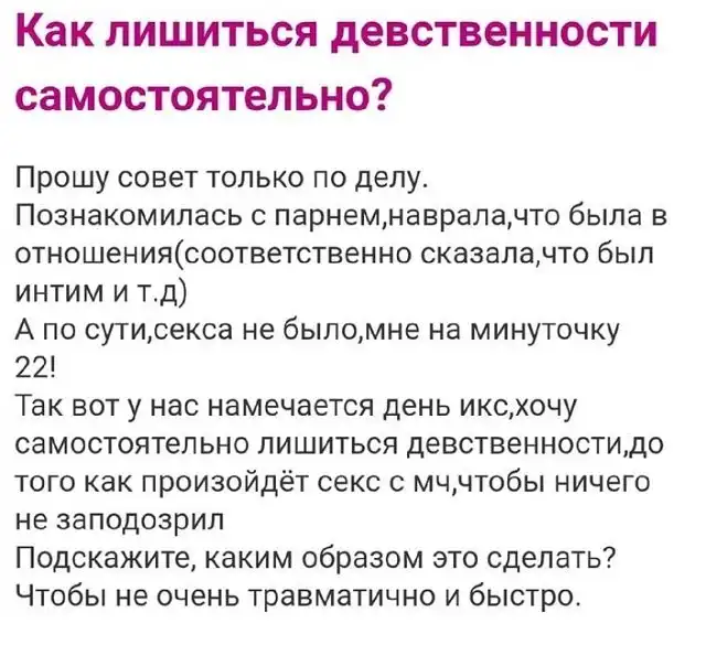 Эх, срамота-то какая... срамота. Да, эти истории действительно могут выиграть премию "самый испанский стыд". Но где же еще страждущим найти мудрости и ответов на те сокровенные вопросы, что их беспокоят? Конечно же на женских форумах. Давайте поглядим, что тревожит этих бедняг.