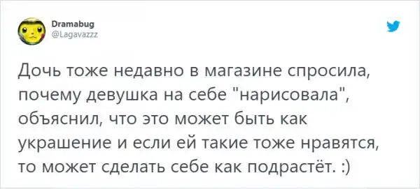 А ещё люди с татуировками решили поделиться своим опытом общения с детьми и их родителями на эту тему.
