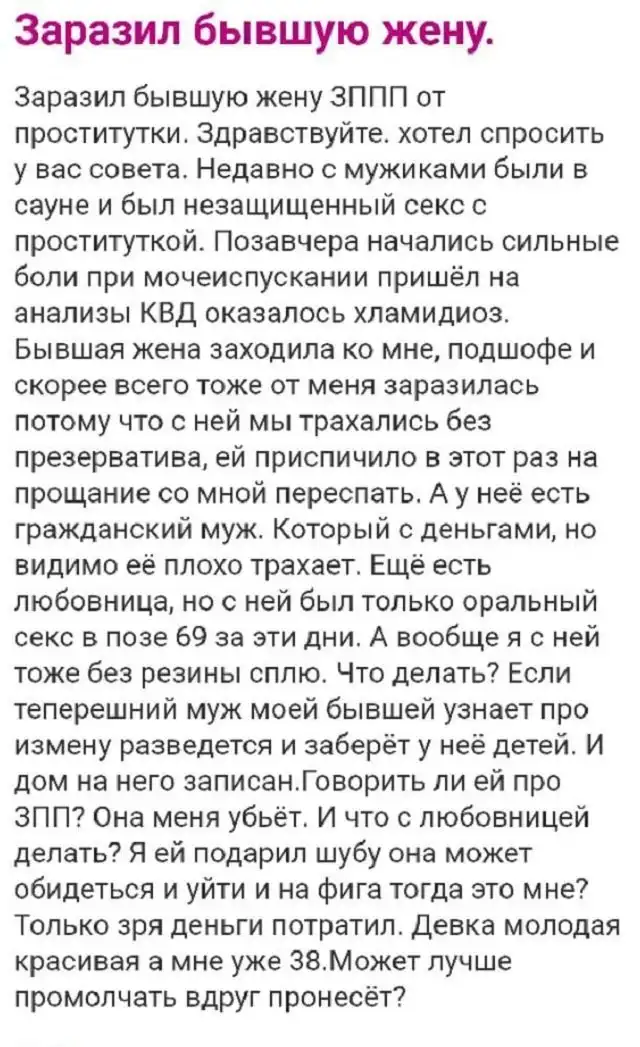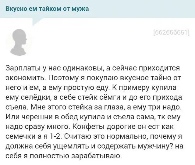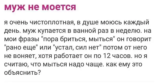 Что делать, если тебе не разрешают вставить золотой зуб? Сколько раз надо кормить жену? Как быть, если муж не моется? Да... столько вопросов... как же получить на них ответ? Правильно, на женских форумах все подробно расскажут и объяснят. Давайте поглядим, какие еще вопросы мучают бедных девушек.