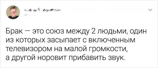 Молодой семейной паре предстоит пройти долгий путь и много чего преодолеть вместе. И этот путь прогулкой в парке точно не назовешь. Поэтому никогда нельзя забывать о юморе, который помогает преодолевать невзгоды. Давайте поднимем себе настроение и поглядим на новую подборку твитов о семейной жизни.