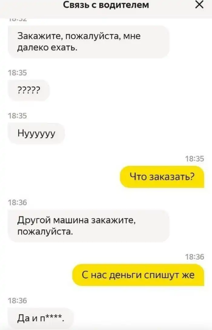 Чаты с водителями такси, которые больше напоминают игру "Глухой телефон"