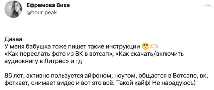 В их молодости ещё не было современной техники, потому осваивать технологии пришлось заново. Такие заметки реально помогают не запутаться и быстрее разобраться!