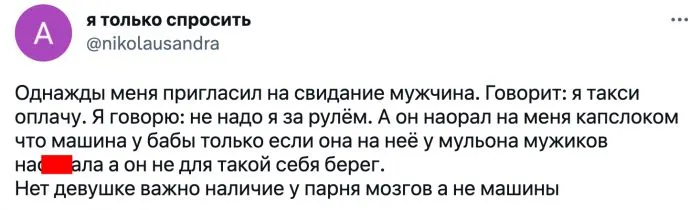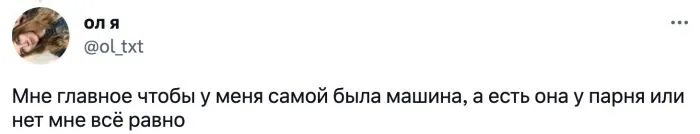Личный авто - один из критериев при выборе спутника. В Твиттере пользователи начали выяснять, насколько важно для девушек наличие машины. Давайте узнаем ответы.