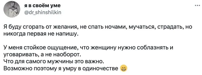 Помните шутку про то, что девушка написала первая парню и умерла? Так вот в Твиттере пользователи решили выяснить, как на самом деле мужчины относятся к барышням, которые проявляют инициативу.