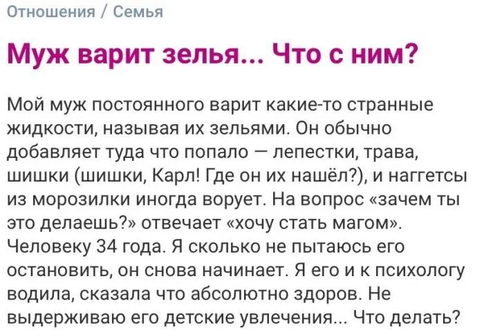 Женщины - удивительные создания. В голову им приходят самые разнообразные мысли. Хорошо, что есть форумы, где можно почитать их рассуждения и волнующие вопросы. Порой смешно, а порой страшно от их фразочек.