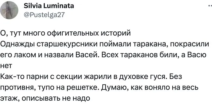 Некоторые студенты живут в общежитиях при универах. Там действуют свои правила, которые приятно нарушать. Герои нашей подборки поделились воспоминаниями, которые веселят и греют душу даже спустя годы.