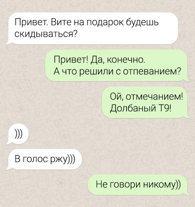 Во время переписок происходит немало забавных фейлов. И чаще всего они связаны с опечатками! Порой мы так спешим отправить сообщение, что не успеваем проверить текст на ошибки. Автозамена и невнимательность - это идеальный дуэт для для новой подборки забавных переписок.