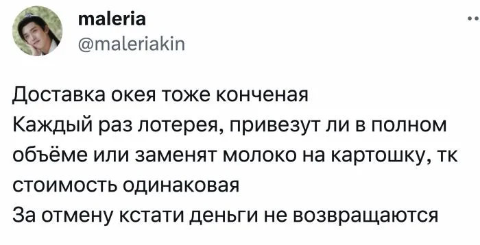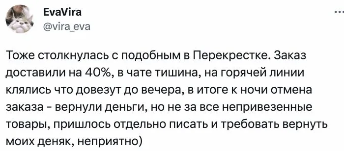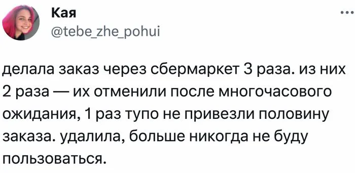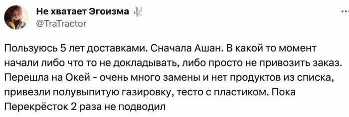 Сервисы доставки продуктов есть во многих магазинах - и они реально выручают. Пока не доходит до случая, когда всё пошло не по плану. Проще было сходить самому в продуктовый...