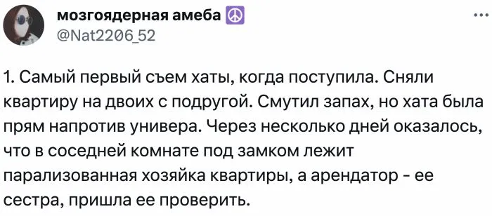 Не у всех есть своё жильё, поэтому аренда порой выглядит как лотерея. И хорошо, если выпал приятный сектор-приз на барабане, но порой всё совсем наоборот. Перед вами истории про квартиры.