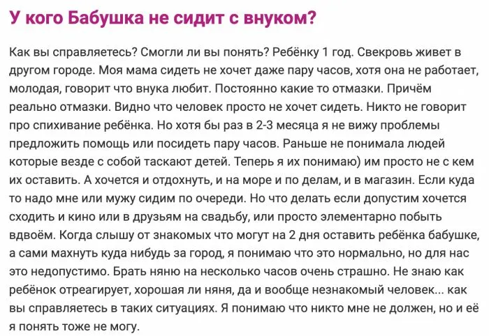 "Мама отказывается сидеть с внуками": молодые родители жалуются на родню, обещавшую помогать