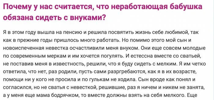 Часто родители почти уговаривают детей завести внуков. Обещают помогать и поддерживать, брать внуков к себе. Однако на деле ситуация разворачивается иначе.