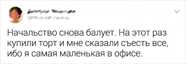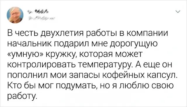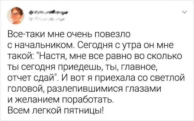 Босс - это слово, как правило, отрицательное. Ведь образ злого, глупого, жадного и несправедливого начальника является классикой жанра. Большая часть населения планеты после работы может часами рассказывать про то, как он их достал. Но, как говорится, бывают и приятные исключения, когда босс всеми силами старается обеспечить себе не только прибыль, но и самые лучшие условия для своих сотрудников и клиентов. Ребята из Твиттера решили рассказать о том, как им повезло с хорошим и мудрым начальством.