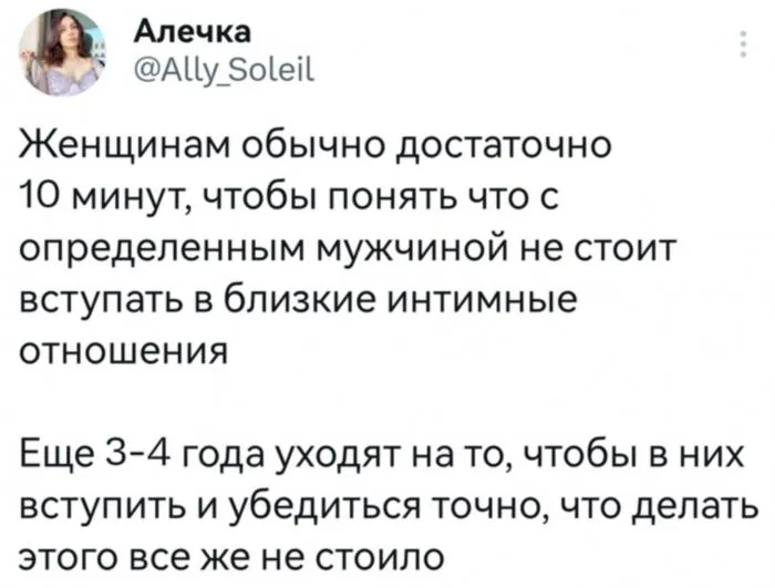 Правдивый пост про отношения между мужчинами и женщиными, авторами которого стали рядовые пользователи соцсетей. Перед нами тот случай, когда комментарии излишни!