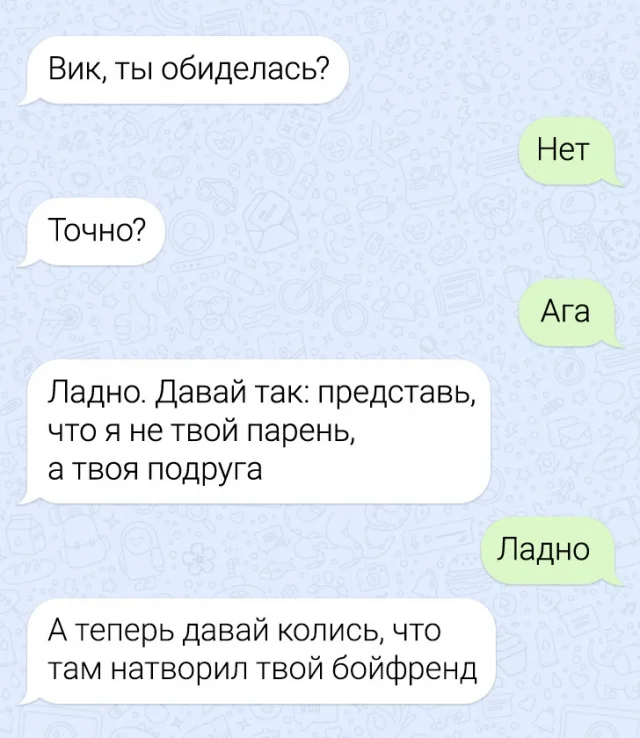 Если ваш организм требует чашки чая и хочет что-нибудь вкусного, то ни в коем случае нельзя себе в этом отказывать. А чтобы перерыв прошел и вовсе замечательно, надо провести его на позитивной ноте. И у нас тут аккурат новая подборочка забавных переписок. Совпадение? Не думаем. Всем веселого просмотра!