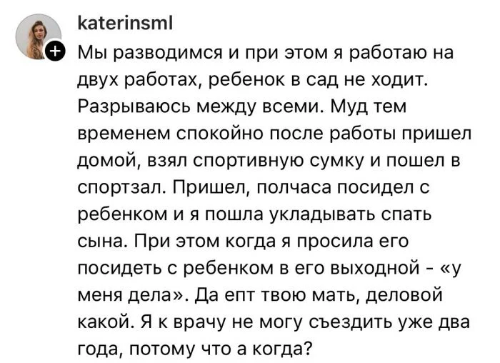 Не ко всем бракам можно применить фразу: "И жили они долго и счастливо". Иногда люди расходятся. Сложнее развестись, когда в браке родились дети. Тогда мужьям необходимо ещё и платить алименты. Однако не все готовы к этому. В посте девушки поделились, как ведут себя их бывшие мужья.