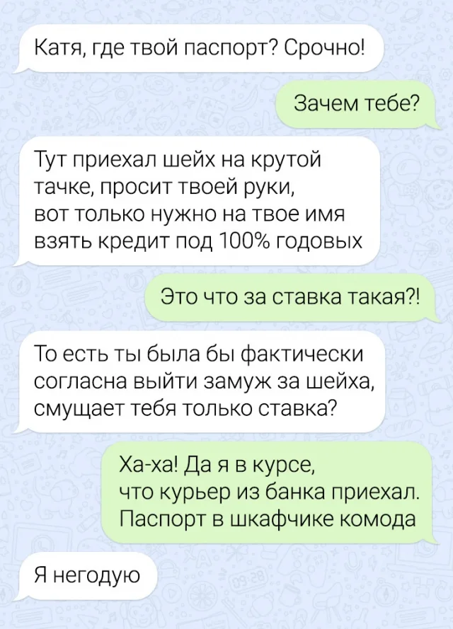 Вот и новые переписочки. Такого контента мало никогда не бывает. Особенно, когда нам выпадает пара свободных минут. Давайте проведем их на позитиве и поглядим новую подборку. Всех милости просим в пост.