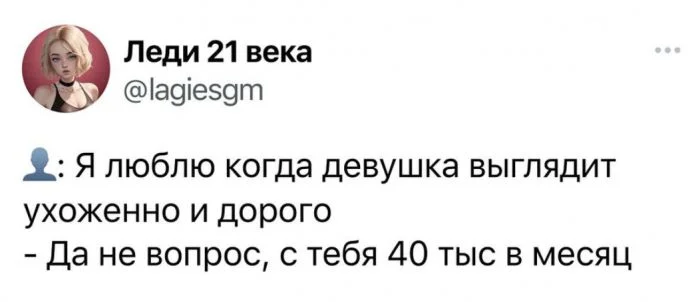 В соцсетях есть аккаунт, который якобы ведёт типичная девушка 21 века. Авторы собрали в картинках и фразах всю суть женщин и проблем современного мира. Больше всего постов про комфорт, деньги, отношения. Но ведь это как раз то, что беспокоит большинство?