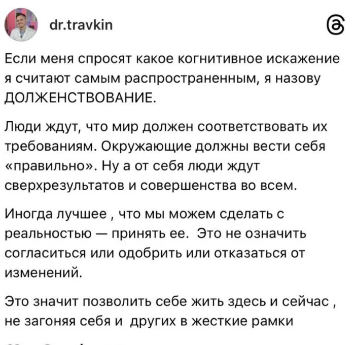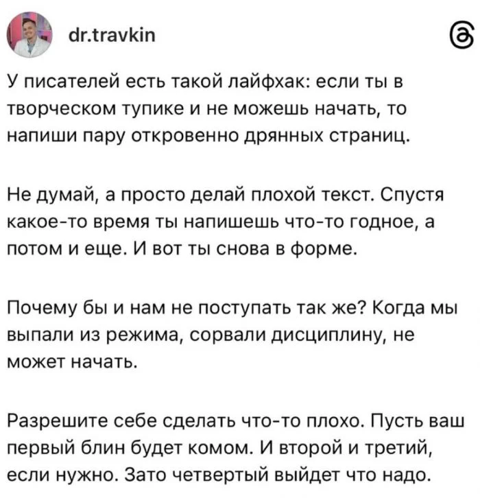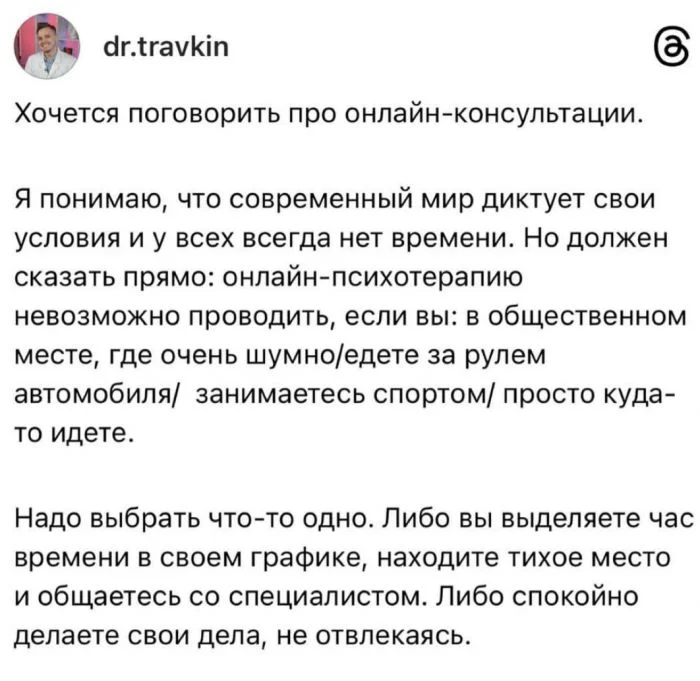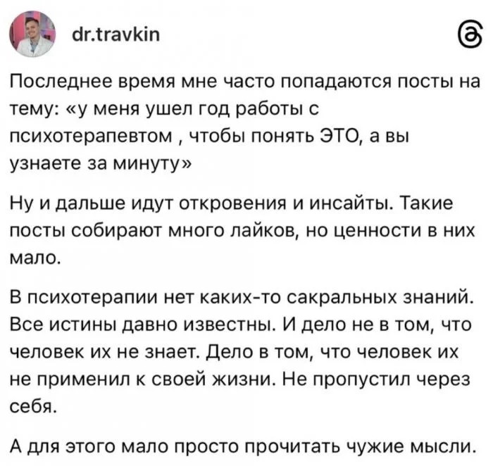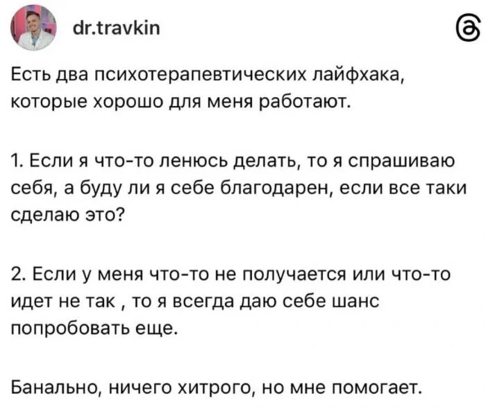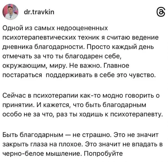 3. Доктор Травкин, посты которого мы сейчас читаем, делится в соцсетях простыми истинами, терапевтичными советами и упражнениями