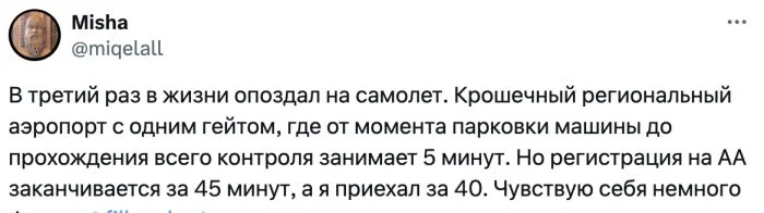 Опоздать на самолёт - страшный сон многих. Помимо того, что сгорает билет, часть денег могут не вернуть, приходится ещё докупать новые билеты и ждать следующий рейс, а он не всегда бывает через пару часов. Пользователи нашей подборки поделились своими оплошностями: кто-то перепутал гейт или аэропорт, другие проспали.
