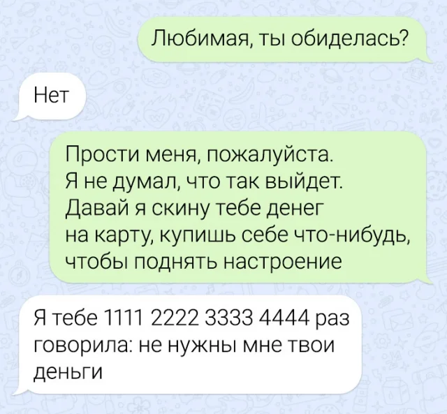 Сильный и слабый пол частенько испытывают сложности в общении, и это непонимание иногда доходит до абсурда. Пользователи сети поделились диалогами с представителями противоположного пола, читая которые начинаешь верить, что мужчины и женщины действительно с разных галактик.