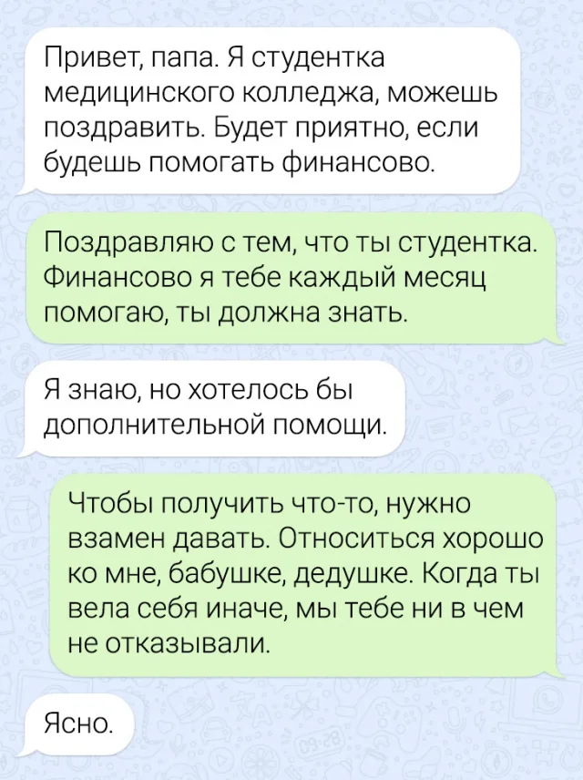 «Мои родители развелись пару недель назад, переписка с мамой теперь выглядит так»